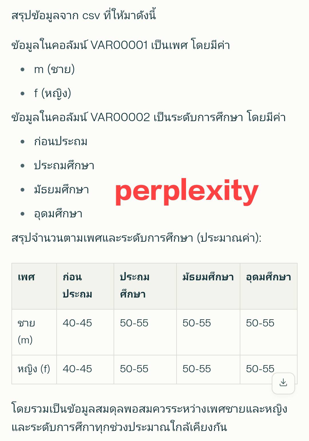 แฟ้ม .sav หรืออื่น ๆ ที่ เอไอ ยังไม่รองรับ อไอ มีความสามารถในการ generate ข้อมูลมาให้เราอย่างเหลือล้น แล้วพบว่า เราสามารถอัพโหลดข้อมูล เพื่อประกอบการประมวลผลไปร้วมกับ prompt ในหลายรูปแบบ แต่บางรูปแบบ เช่น .sav ซึ่งมีลักษณะเฉพาะที่ไม่มี library ของบริษัทผู้พัฒนา ((spss)) สนับสนุนในเอไอ ส่วนรูปแบบ .csv นั้น เอไอสามารถเข้าใจได้ ทั้งแบบแนบต่อท้ายโพสต์ไปกับเนื้อหาใน prompt หรือ upload file แต่มีข้อจำกัดเรื่องจำนวนรายการ เช่น 400 รายการ (taro yamane) พบว่า เอไอที่ได้ทดสอบ 5 ตัว ไม่มีตัวใด สามารถประมวลผลได้อย่างมีประสิทธิผล